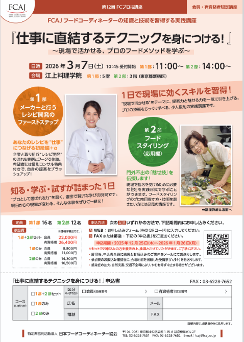 日本フードコーディネーター協会主催「プロ技講座」にて、
